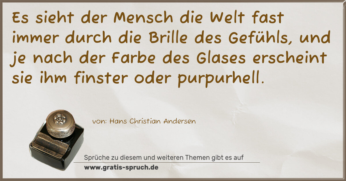 Es sieht der Mensch die Welt fast immer durch die Brille des Gefühls, und je nach der Farbe des Glases erscheint sie ihm finster oder purpurhell.