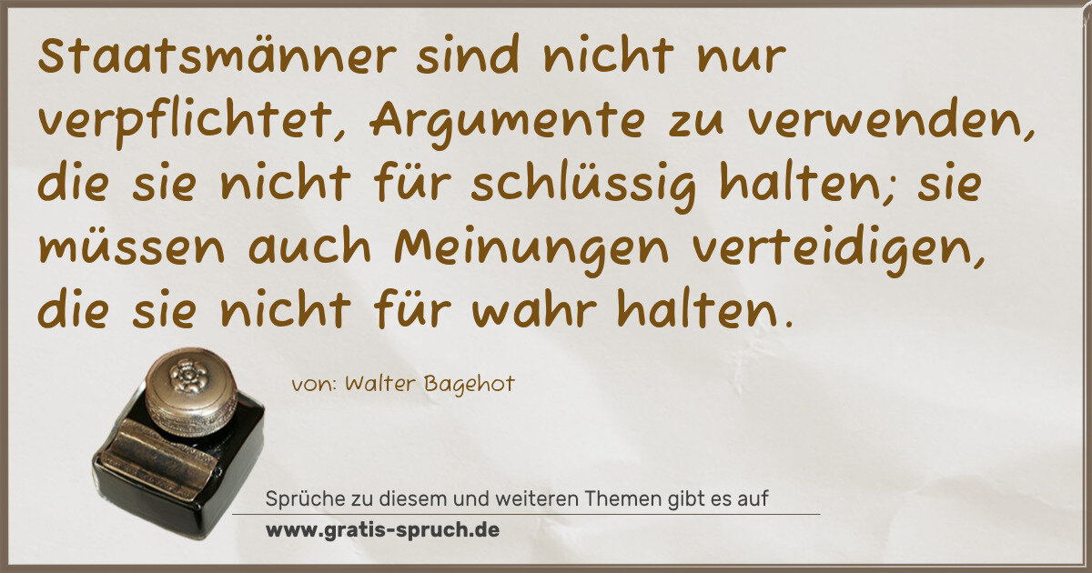 Staatsmänner sind nicht nur verpflichtet, Argumente zu verwenden, die sie nicht für schlüssig halten; sie müssen auch Meinungen verteidigen, die sie nicht für wahr halten.