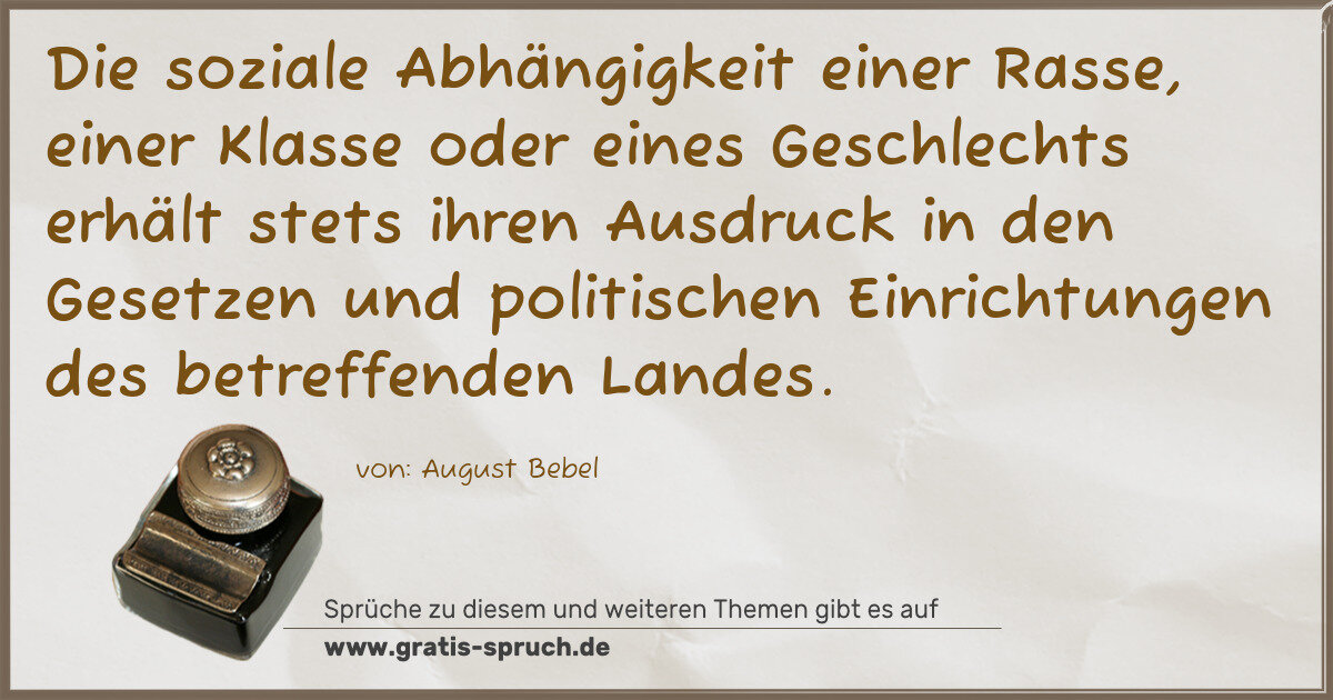 Die soziale Abhängigkeit einer Rasse, einer Klasse oder eines Geschlechts erhält stets ihren Ausdruck in den Gesetzen und politischen Einrichtungen des betreffenden Landes.