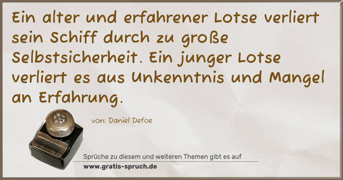 Ein alter und erfahrener Lotse verliert sein Schiff durch zu große Selbstsicherheit. Ein junger Lotse verliert es aus Unkenntnis und Mangel an Erfahrung.