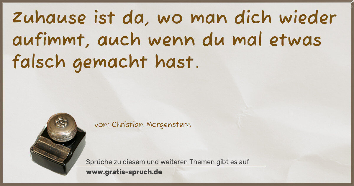 Zuhause ist da, wo man dich wieder aufimmt, auch wenn du mal etwas falsch gemacht hast.