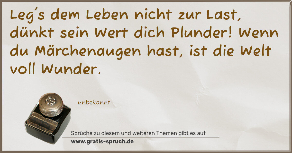 Leg's dem Leben nicht zur Last, dünkt sein Wert dich Plunder! Wenn du Märchenaugen hast, ist die Welt voll Wunder.