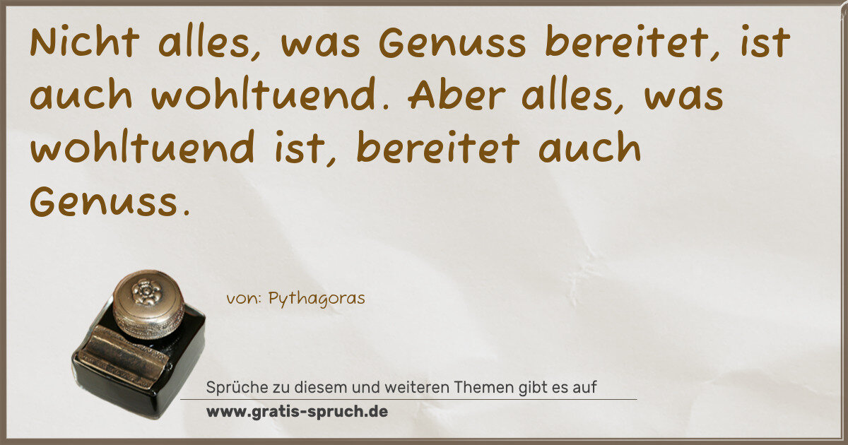 Nicht alles, was Genuss bereitet, ist auch wohltuend. Aber alles, was wohltuend ist, bereitet auch Genuss.