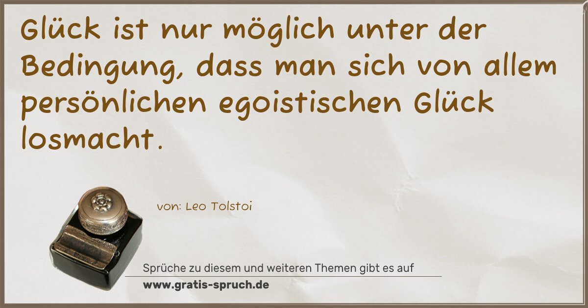 Glück ist nur möglich unter der Bedingung, dass man sich von allem persönlichen egoistischen Glück losmacht.