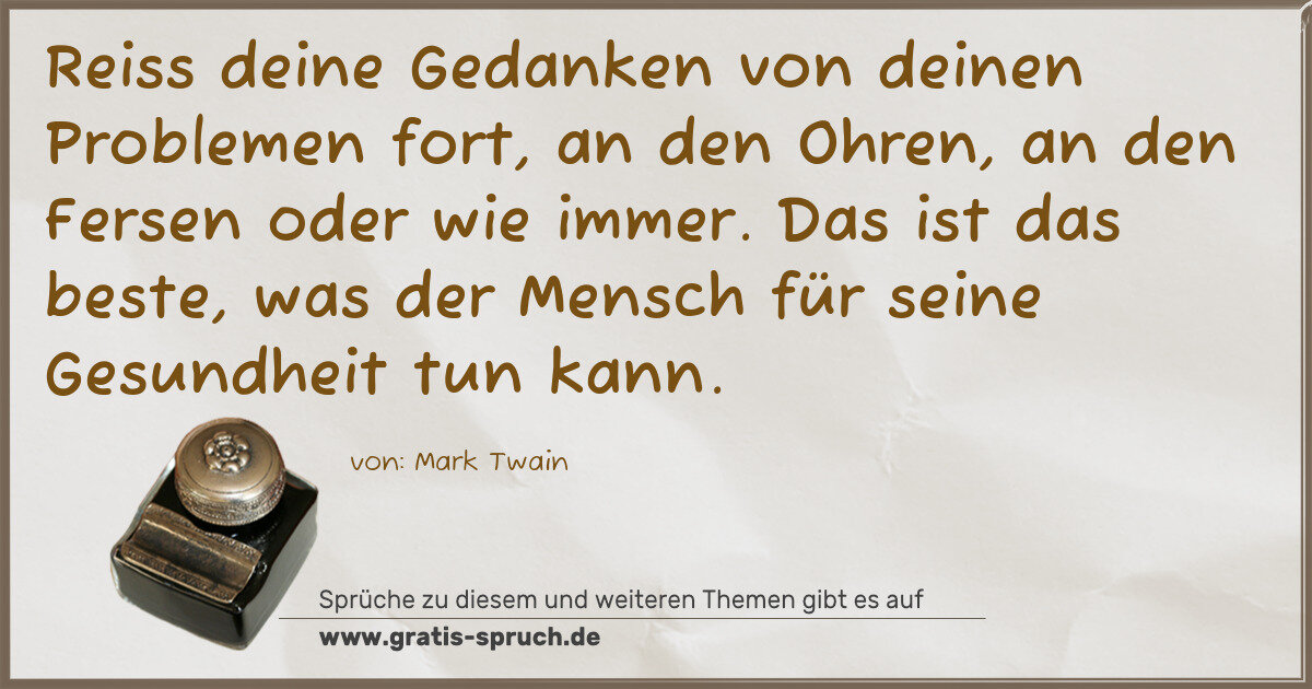 Reiss deine Gedanken von deinen Problemen fort, an den Ohren, an den Fersen oder wie immer. Das ist das beste, was der Mensch für seine Gesundheit tun kann.