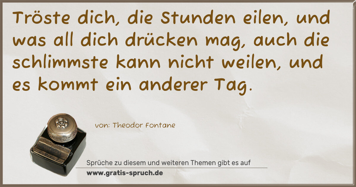 Tröste dich, die Stunden eilen, und was all dich drücken mag, auch die schlimmste kann nicht weilen, und es kommt ein anderer Tag.