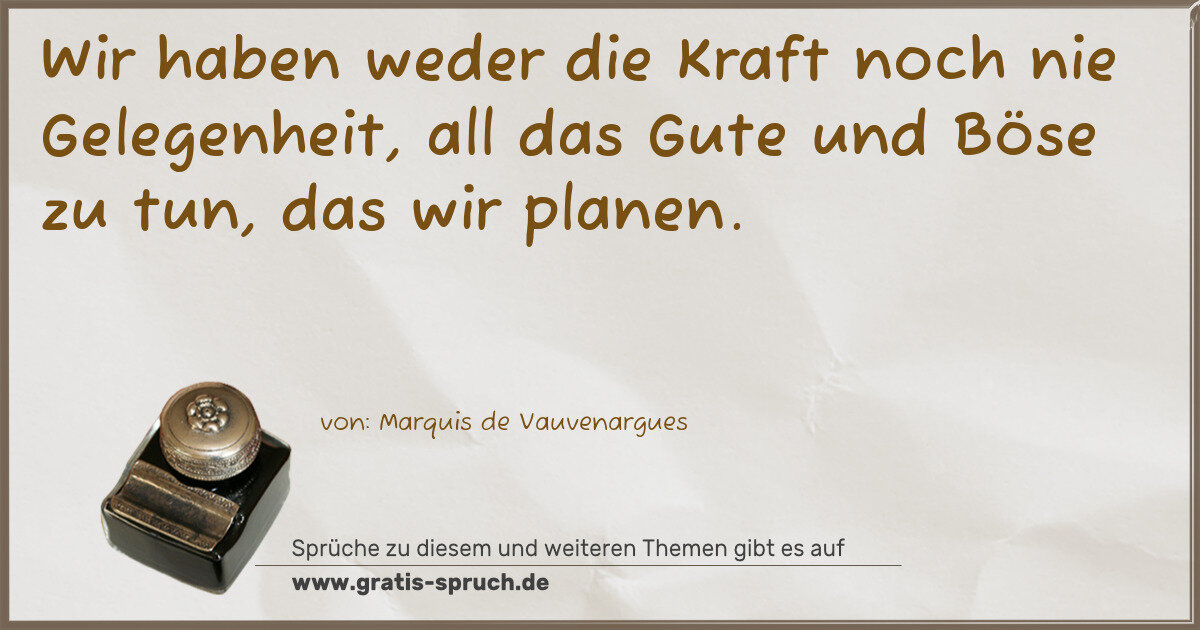 Wir haben weder die Kraft noch nie Gelegenheit, all das Gute und Böse zu tun, das wir planen.