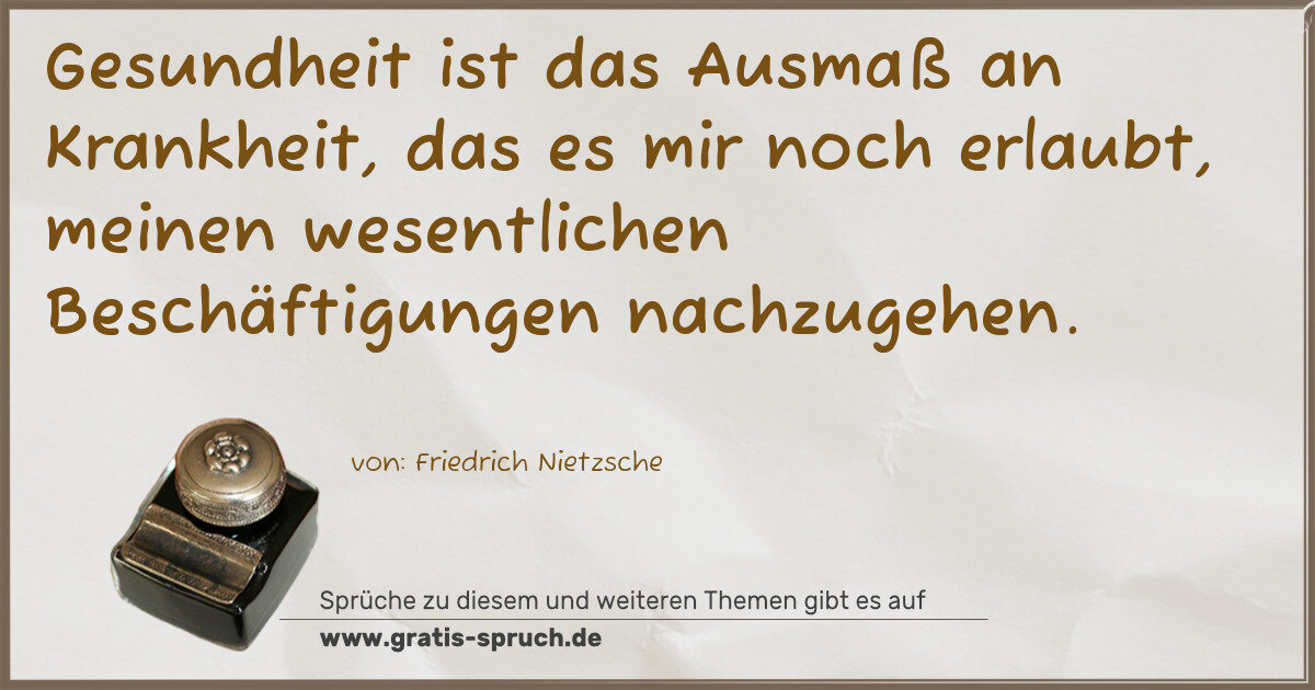 Gesundheit ist das Ausmaß an Krankheit, das es mir noch erlaubt, meinen wesentlichen Beschäftigungen nachzugehen.