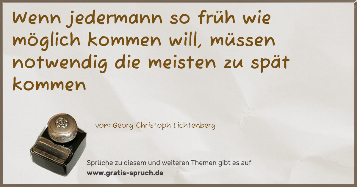 Wenn jedermann so früh wie möglich kommen will, müssen notwendig die meisten zu spät kommen
