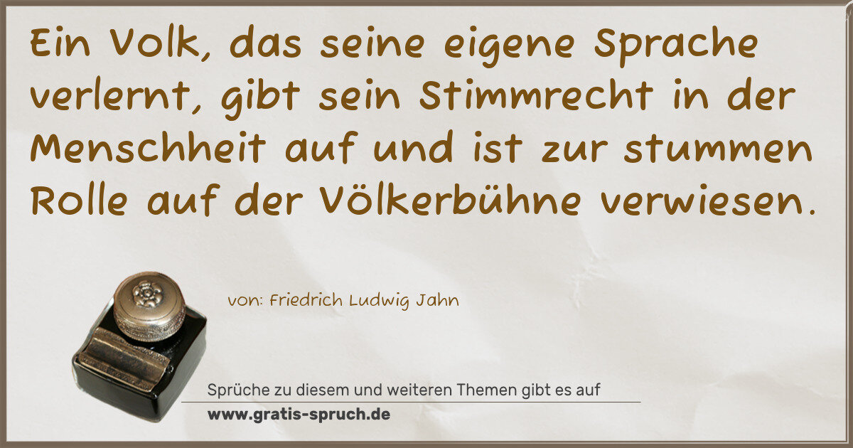 Ein Volk, das seine eigene Sprache verlernt, gibt sein Stimmrecht in der Menschheit auf und ist zur stummen Rolle auf der Völkerbühne verwiesen.