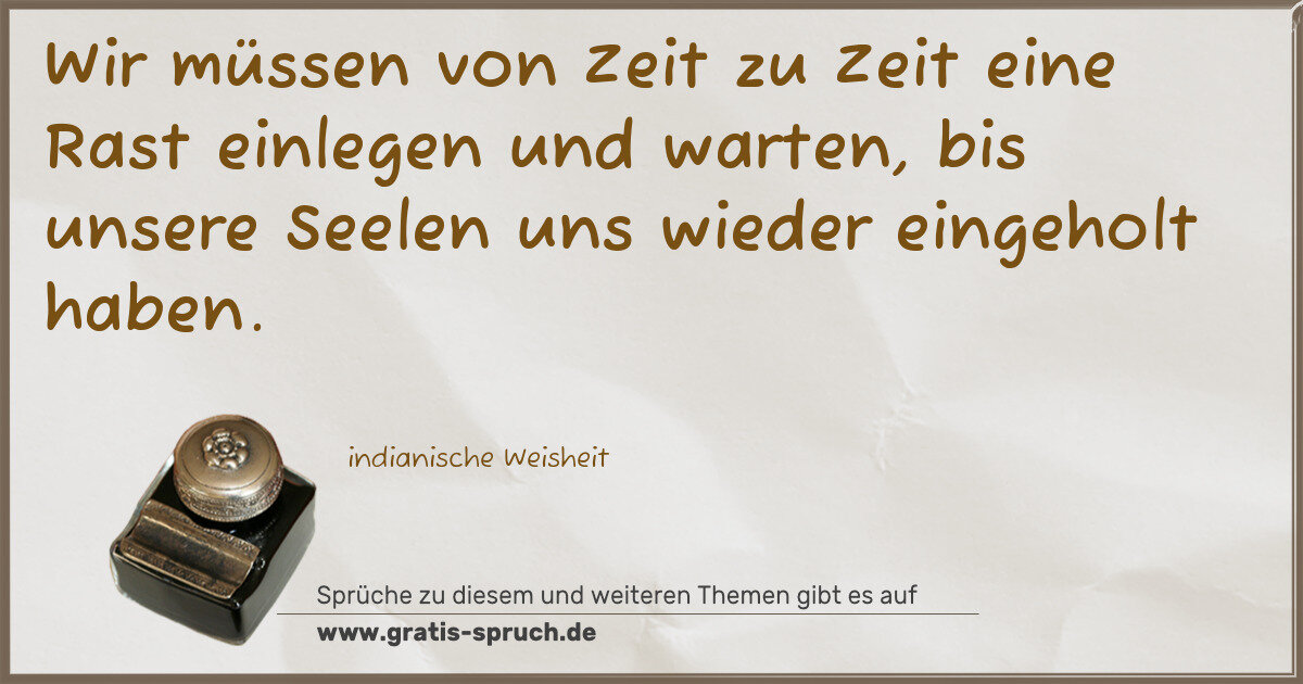Wir müssen von Zeit zu Zeit eine Rast einlegen und warten, bis unsere Seelen uns wieder eingeholt haben.