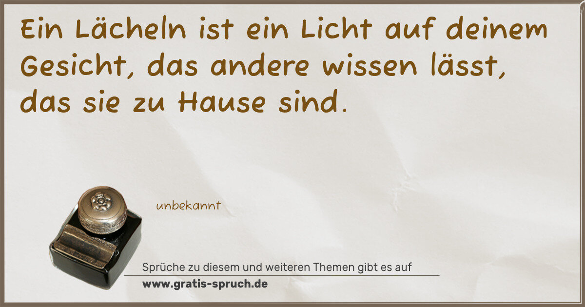 Ein Lächeln ist ein Licht auf deinem Gesicht, das andere wissen lässt, das sie zu Hause sind.