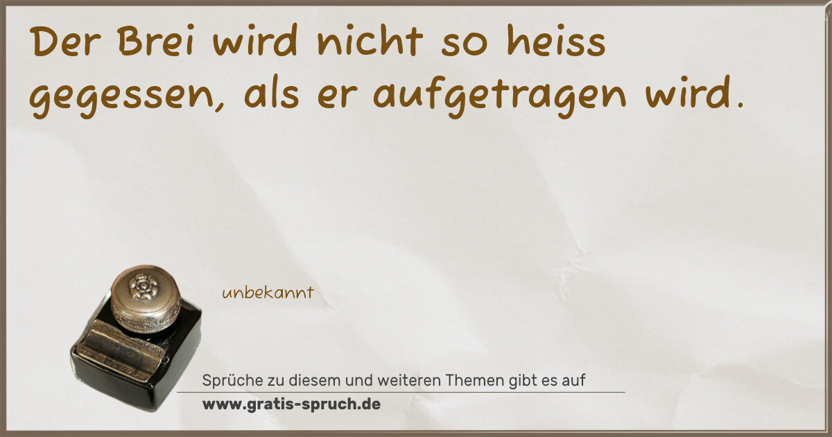 Der Brei wird nicht so heiss gegessen, als er aufgetragen wird.