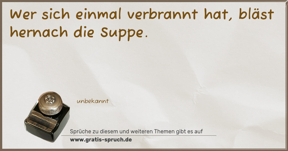 Wer sich einmal verbrannt hat, bläst hernach die Suppe.