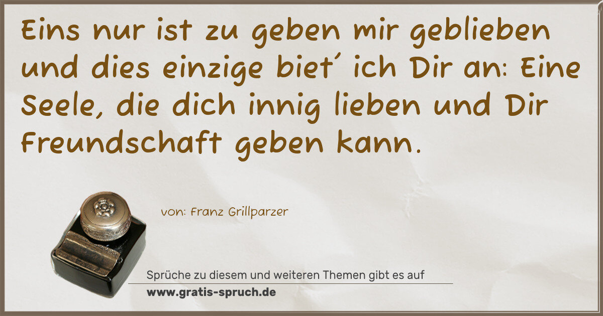 Eins nur ist zu geben mir geblieben und dies einzige biet' ich Dir an: Eine Seele, die dich innig lieben und Dir Freundschaft geben kann.