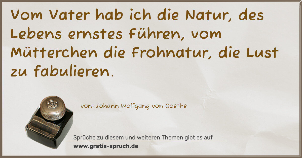 Vom Vater hab ich die Natur, des Lebens ernstes Führen, vom Mütterchen die Frohnatur, die Lust zu fabulieren.