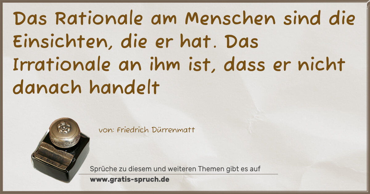 Das Rationale am Menschen sind die Einsichten, die er hat. Das Irrationale an ihm ist, dass er nicht danach handelt