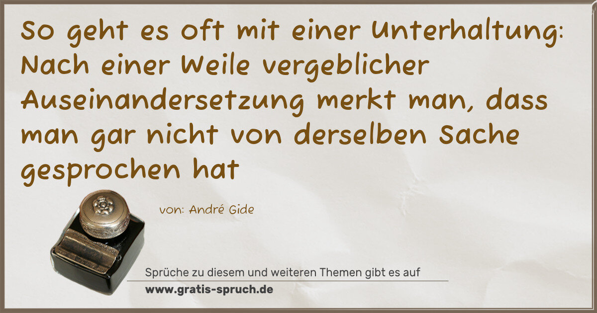 So geht es oft mit einer Unterhaltung: Nach einer Weile vergeblicher Auseinandersetzung merkt man, dass man gar nicht von derselben Sache gesprochen hat