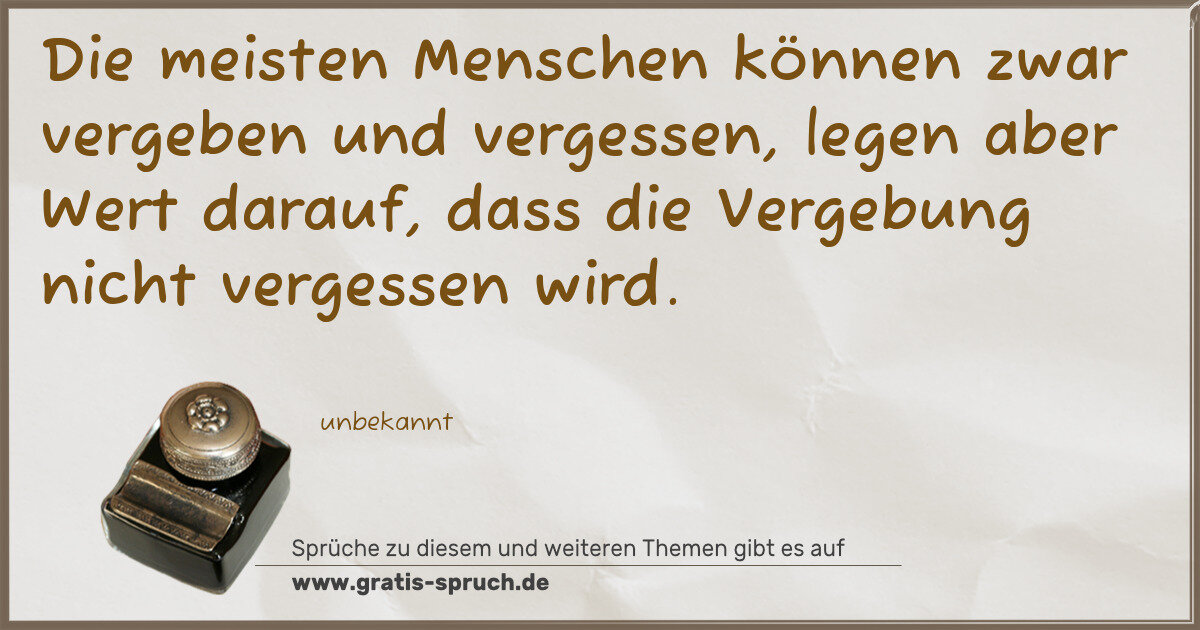 Die meisten Menschen können zwar vergeben und vergessen, legen aber Wert darauf, dass die Vergebung nicht vergessen wird.