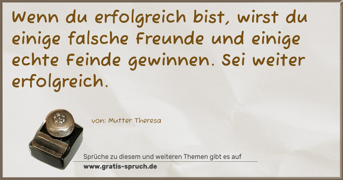 Wenn du erfolgreich bist, wirst du einige falsche Freunde und einige echte Feinde gewinnen. Sei weiter erfolgreich.