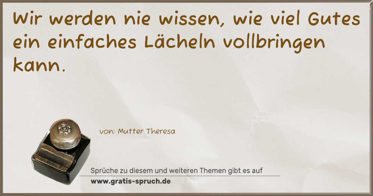 Wir werden nie wissen, wie viel Gutes ein einfaches Lächeln vollbringen kann.
