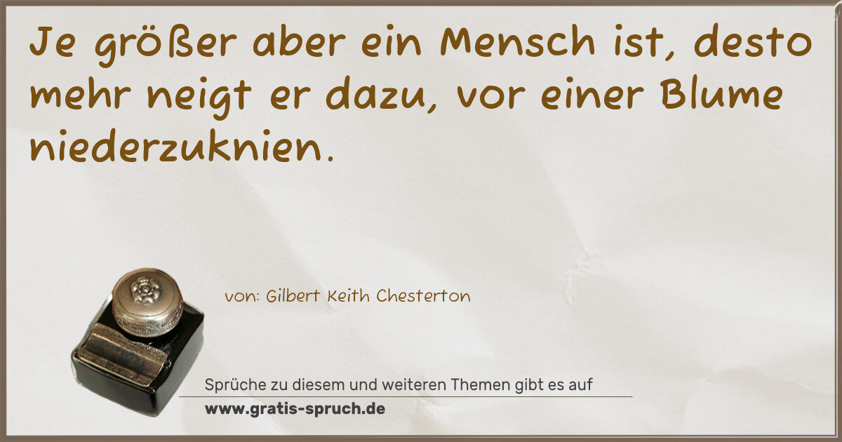 Je größer aber ein Mensch ist, desto mehr neigt er dazu, vor einer Blume niederzuknien.