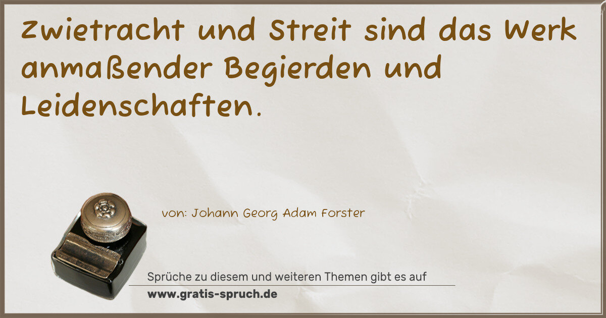 Zwietracht und Streit sind das Werk anmaßender Begierden und Leidenschaften.