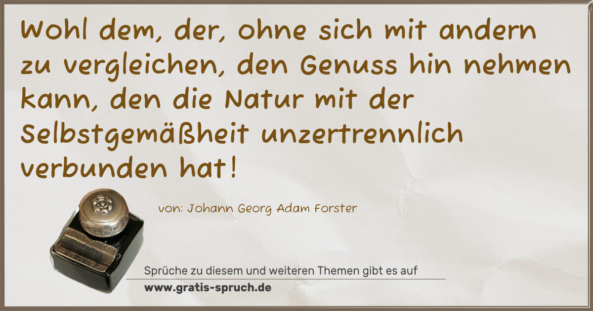 Wohl dem, der, ohne sich mit andern zu vergleichen, den Genuss hin nehmen kann, den die Natur mit der Selbstgemäßheit unzertrennlich verbunden hat!