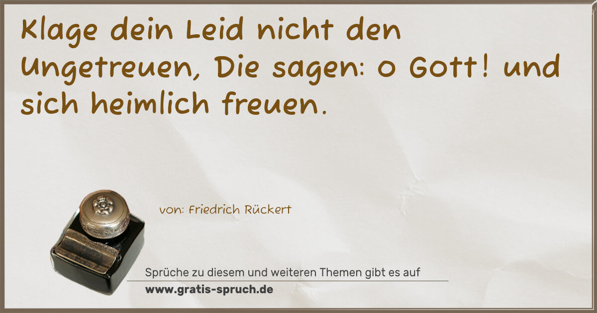 Klage dein Leid nicht den Ungetreuen, Die sagen: o Gott! und sich heimlich freuen.