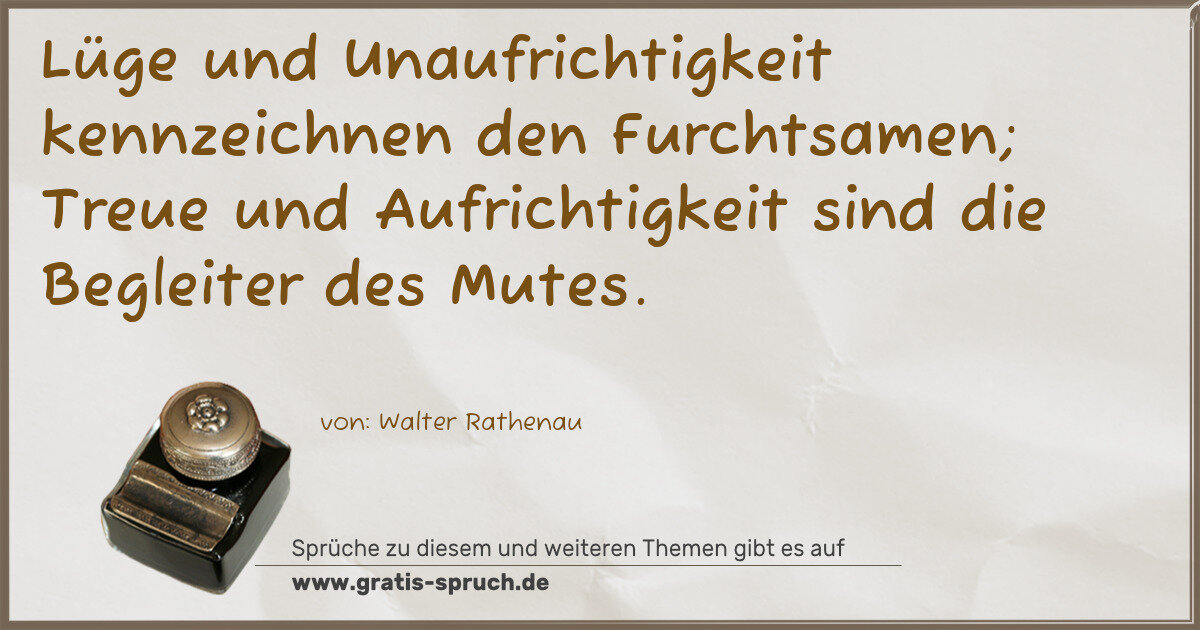 Lüge und Unaufrichtigkeit kennzeichnen den Furchtsamen; Treue und Aufrichtigkeit sind die Begleiter des Mutes.