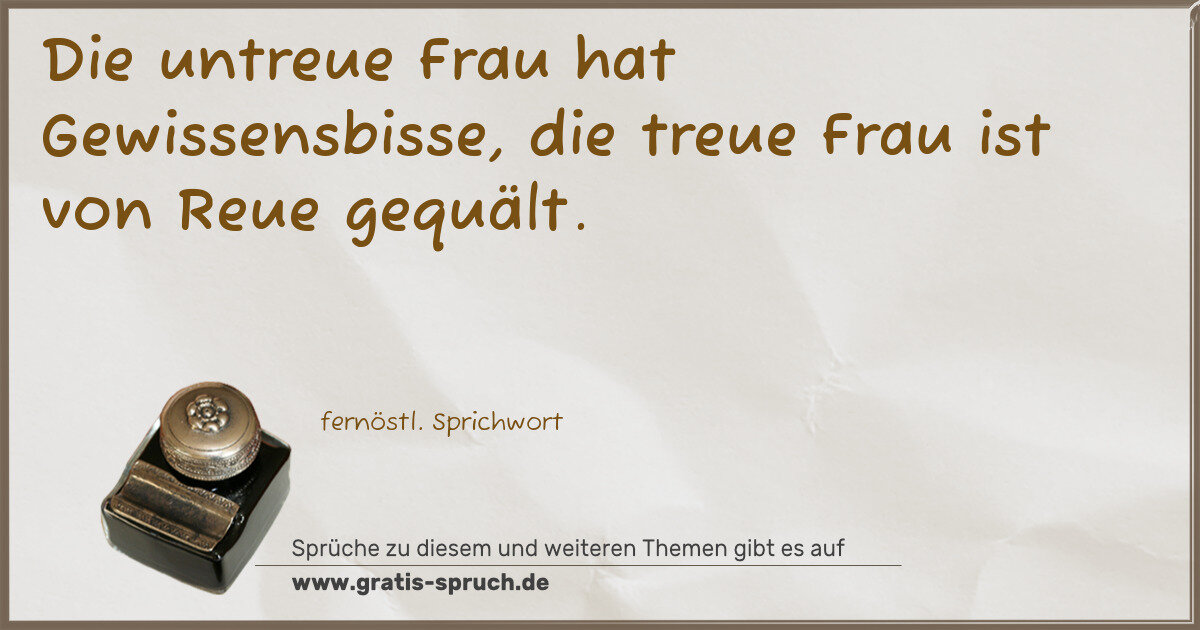 Die untreue Frau hat Gewissensbisse, die treue Frau ist von Reue gequält.