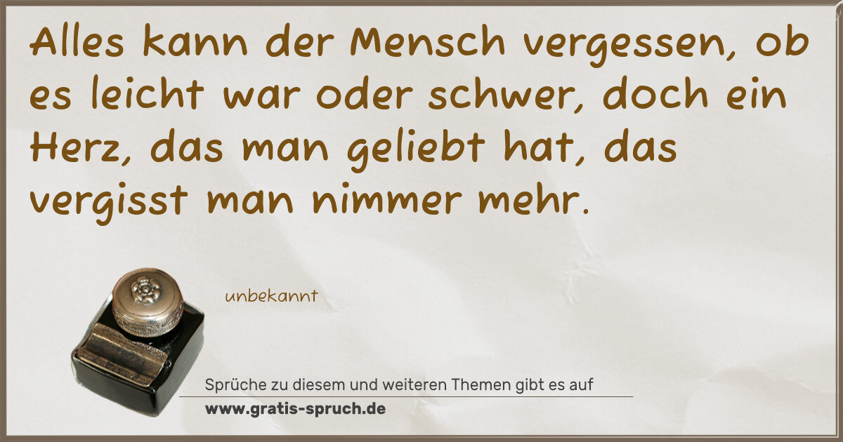 Alles kann der Mensch vergessen, ob es leicht war oder schwer, doch ein Herz, das man geliebt hat, das vergisst man nimmer mehr.