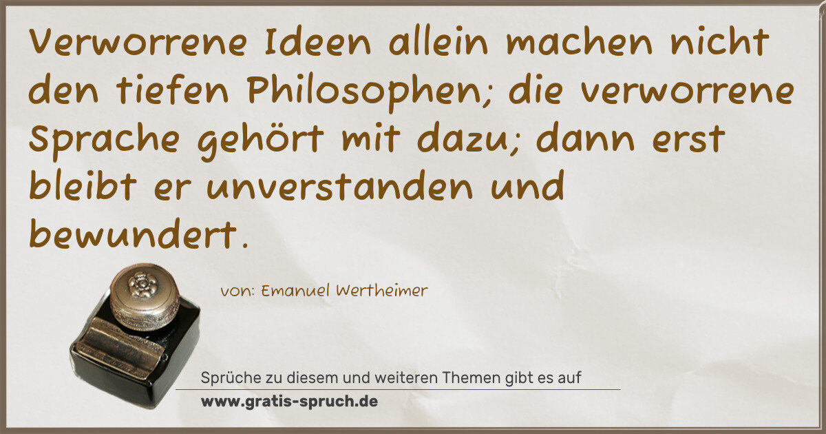 Verworrene Ideen allein machen nicht den tiefen Philosophen; die verworrene Sprache gehört mit dazu; dann erst bleibt er unverstanden und bewundert.