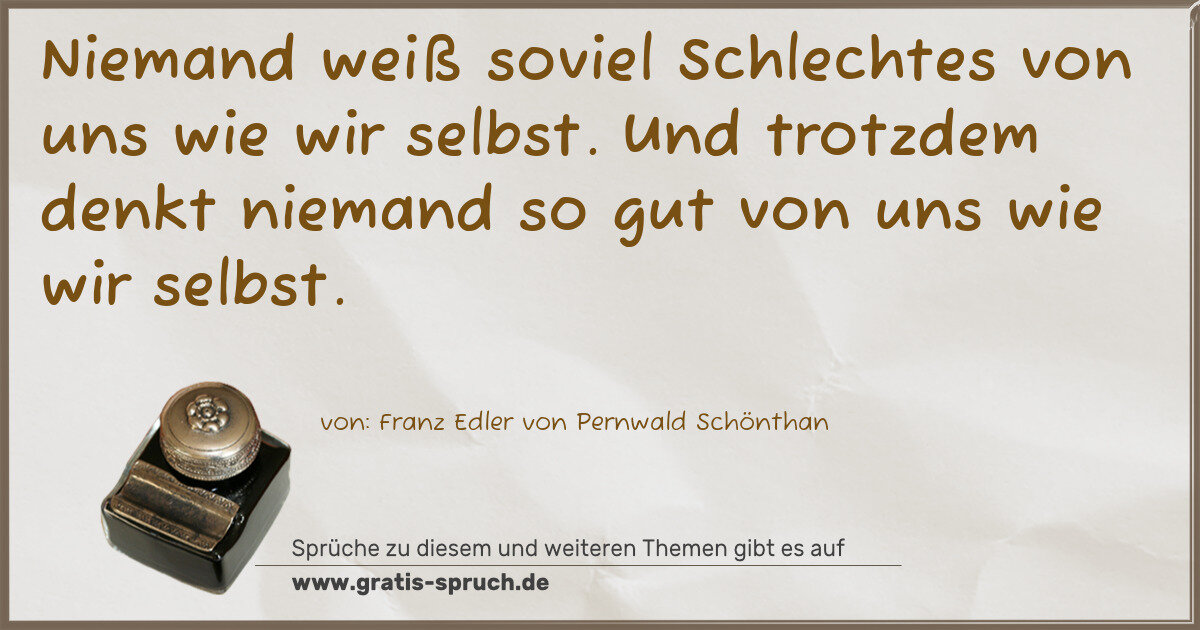 Niemand weiß soviel Schlechtes von uns wie wir selbst. Und trotzdem denkt niemand so gut von uns wie wir selbst.