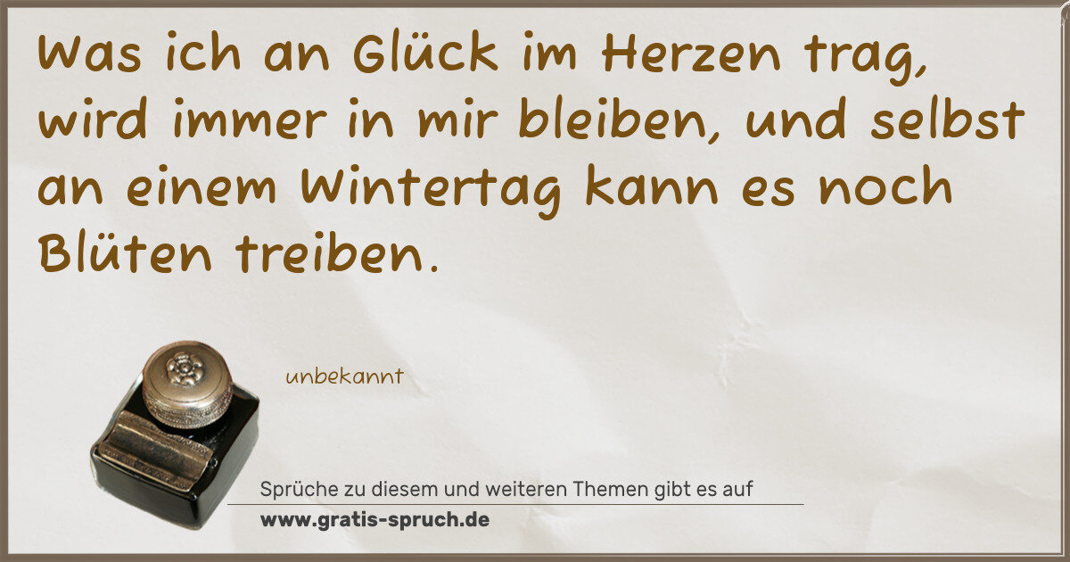 Was ich an Glück im Herzen trag, wird immer in mir bleiben, und selbst an einem Wintertag kann es noch Blüten treiben.