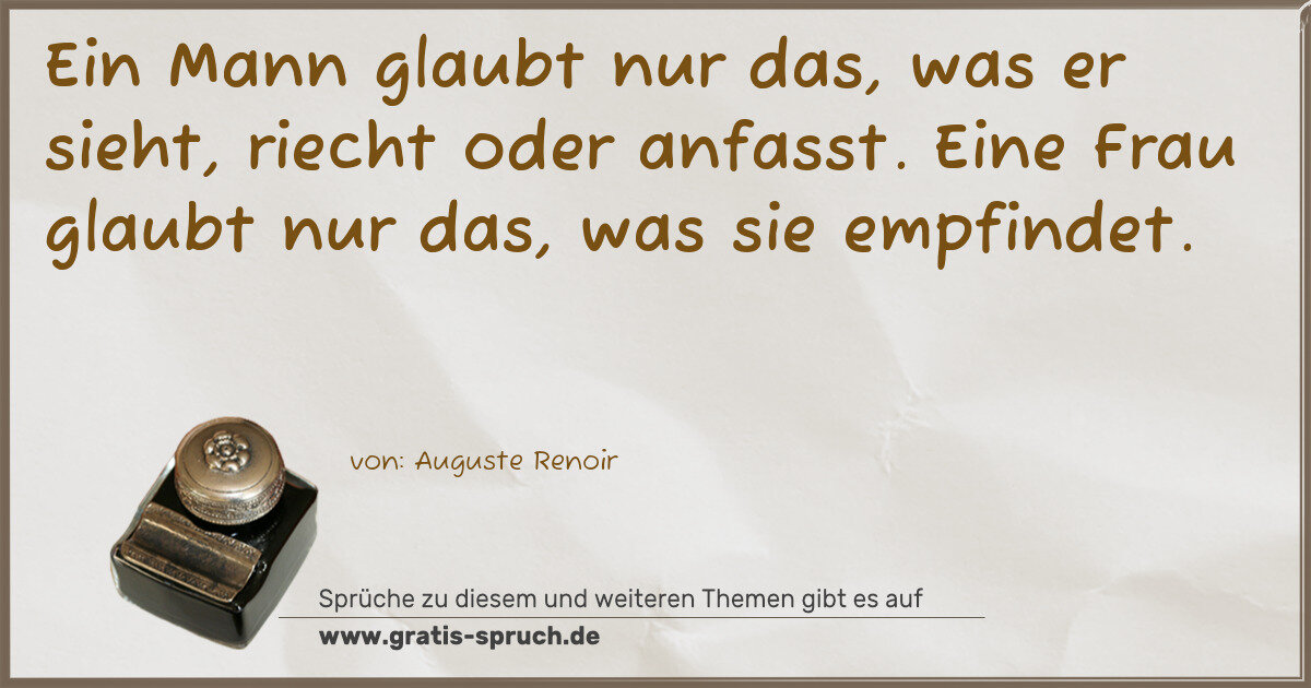 Ein Mann glaubt nur das, was er sieht, riecht oder anfasst. Eine Frau glaubt nur das, was sie empfindet.