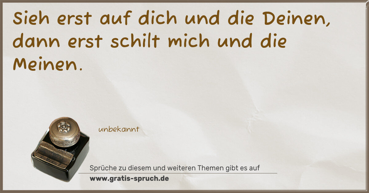 Sieh erst auf dich und die Deinen, dann erst schilt mich und die Meinen.
