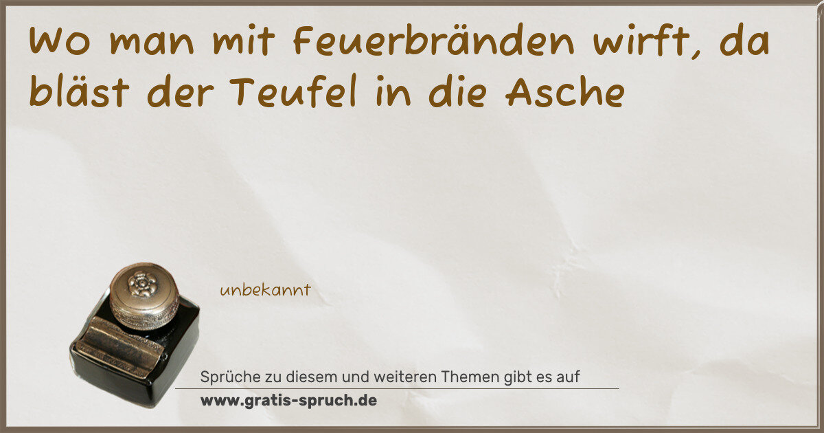 Wo man mit Feuerbränden wirft, da bläst der Teufel in die Asche