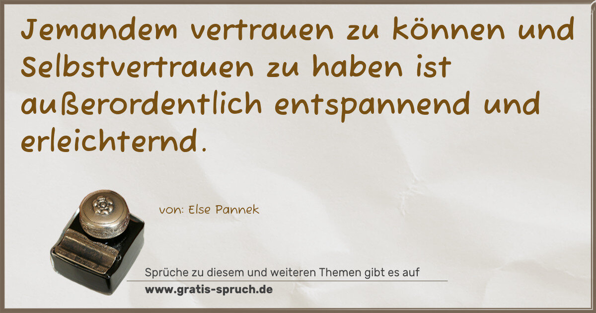 Jemandem vertrauen zu können und Selbstvertrauen zu haben ist außerordentlich entspannend und erleichternd.
