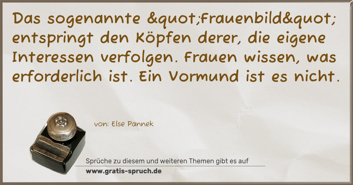 Das sogenannte "Frauenbild" entspringt den Köpfen derer, die eigene Interessen verfolgen. Frauen wissen, was erforderlich ist. Ein Vormund ist es nicht.