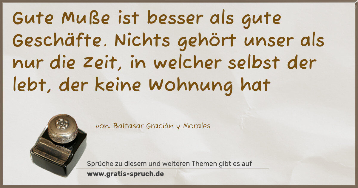 Gute Muße ist besser als gute Geschäfte. Nichts gehört unser als nur die Zeit, in welcher selbst der lebt, der keine Wohnung hat