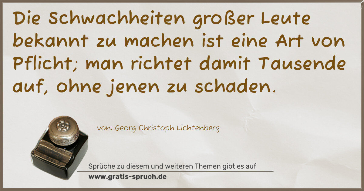 Die Schwachheiten großer Leute bekannt zu machen ist eine Art von Pflicht; man richtet damit Tausende auf, ohne jenen zu schaden.