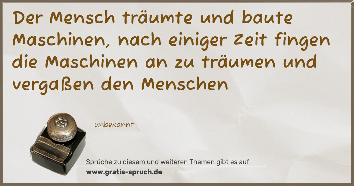 Der Mensch träumte und baute Maschinen, nach einiger Zeit fingen die Maschinen an zu träumen und vergaßen den Menschen
