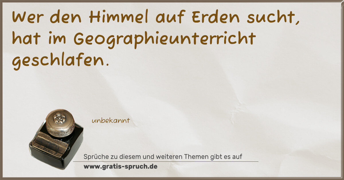 Wer den Himmel auf Erden sucht, hat im Geographieunterricht geschlafen.