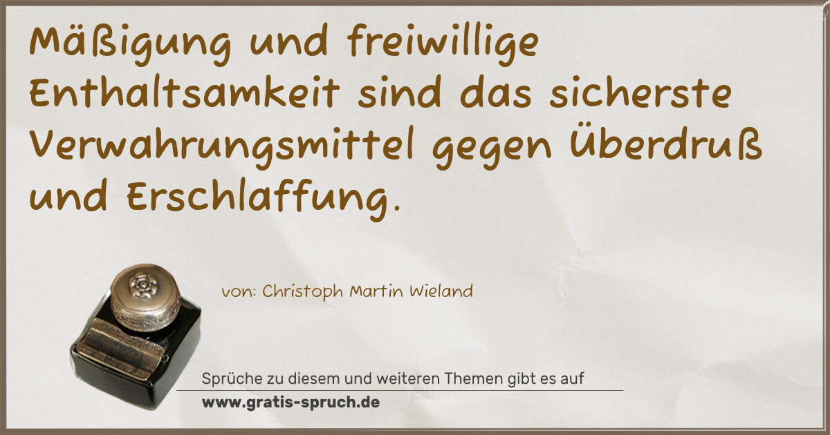 Mäßigung und freiwillige Enthaltsamkeit sind das sicherste Verwahrungsmittel gegen Überdruß und Erschlaffung.