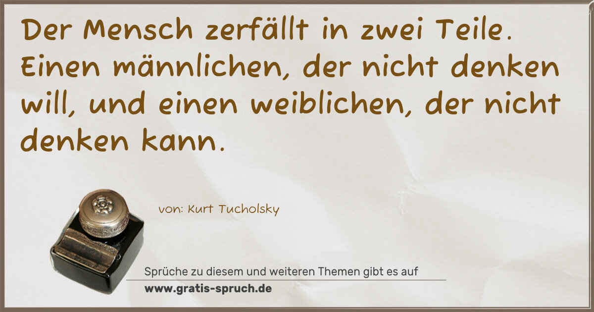 Der Mensch zerfällt in zwei Teile. Einen männlichen, der nicht denken will, und einen weiblichen, der nicht denken kann.