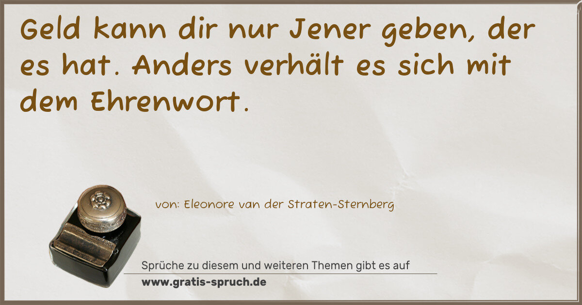 Geld kann dir nur Jener geben, der es hat. Anders verhält es sich mit dem Ehrenwort.
