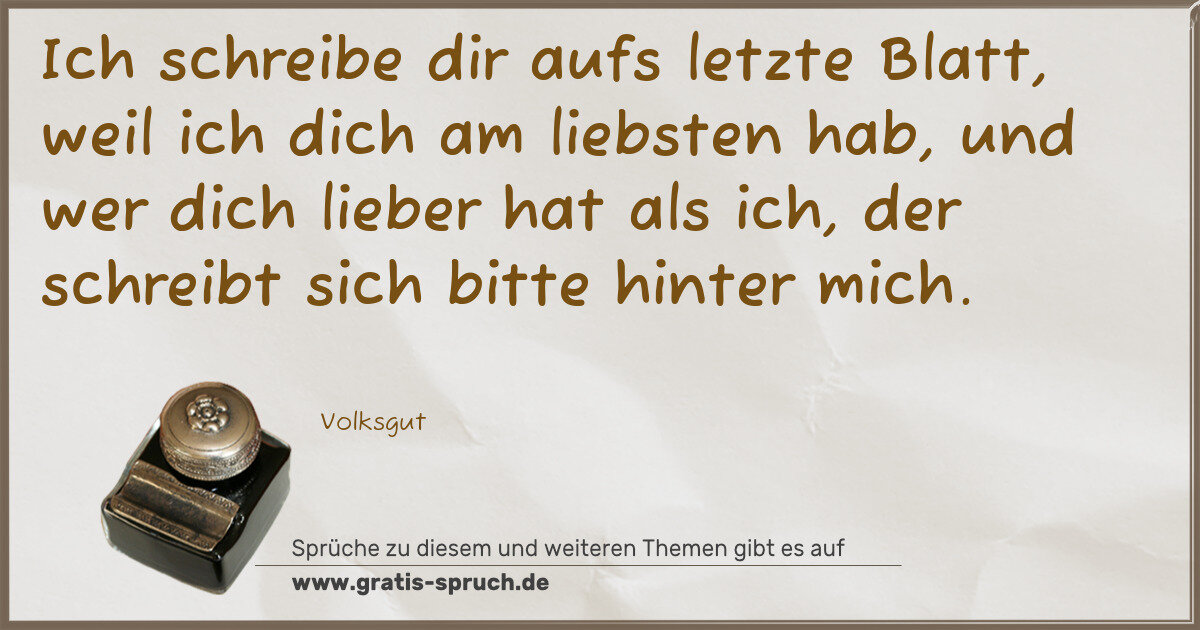 Ich schreibe dir aufs letzte Blatt, weil ich dich am liebsten hab, und wer dich lieber hat als ich, der schreibt sich bitte hinter mich.