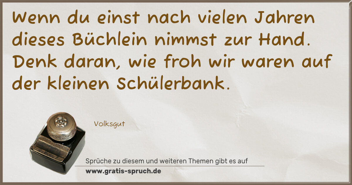 Wenn du einst nach vielen Jahren dieses Büchlein nimmst zur Hand. Denk daran, wie froh wir waren auf der kleinen Schülerbank.