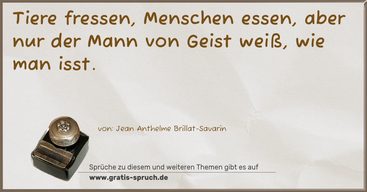 Tiere fressen, Menschen essen, aber nur der Mann von Geist weiß, wie man isst.